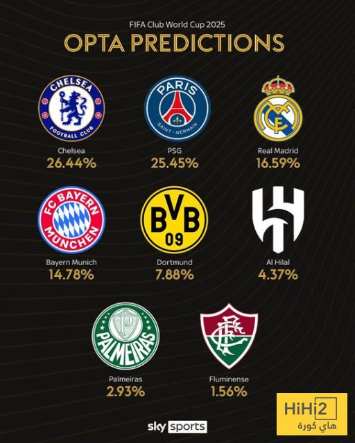 اوبتا رشحت تشيلسي للتتويج بلقب مونديال الاندية بنسبة بلغت (26.44%) متفوقا على بطل دوري ابطال اوروبا باريس سان جيرمان الذي بلغت حظوظه 25.45% .