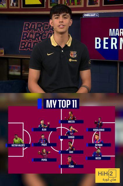 عدن - ياسمين عبد العظيم - هاي كورة – كشف مارك بيرنال لاعب وسط نادي برشلونة الشاب عن تشكيلته المثالية و أفضل 11 لاعب في تاريخ كرة القدم.