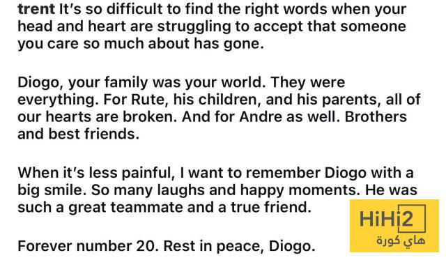 “عندما يكون الأمر أقل ألمًا، أريد أن أتذكر ديوغو بابتسامة عريضة. الكثير من الضحكات واللحظات السعيدة، كان زميلًا رائعًا وصديقًا حقيقيًا.”