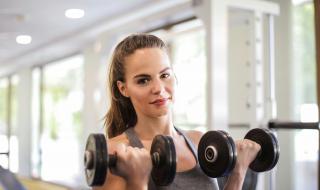 - امسكّي دمبل في كل يد، واثني المرفقين 90 درجة.