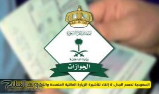 - أوضحت المديرية العامة للجوازات أن جميع الأخبار التي تم تداولها حول إلغاء تأشيرة الزيارة العائلية المتعددة، أو تقليص مدتها، لا أساس لها من الصحة. وأكدت أن هذه التأشيرة لا تزال سارية وتعمل وفق الأنظمة المعتمدة، ولم يطرأ عليها أي تغيير رسمي.