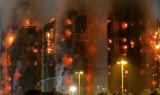 واندلع الحريق في سقالات من الخيزران مستخدمة في أعمال الصيانة، قبل أن يمتد إلى أجزاء من 5 مبان على الأقل داخل المجمع، وسط أعمدة كثيفة من اللهب والدخان شوهدت تتصاعد من الموقع.